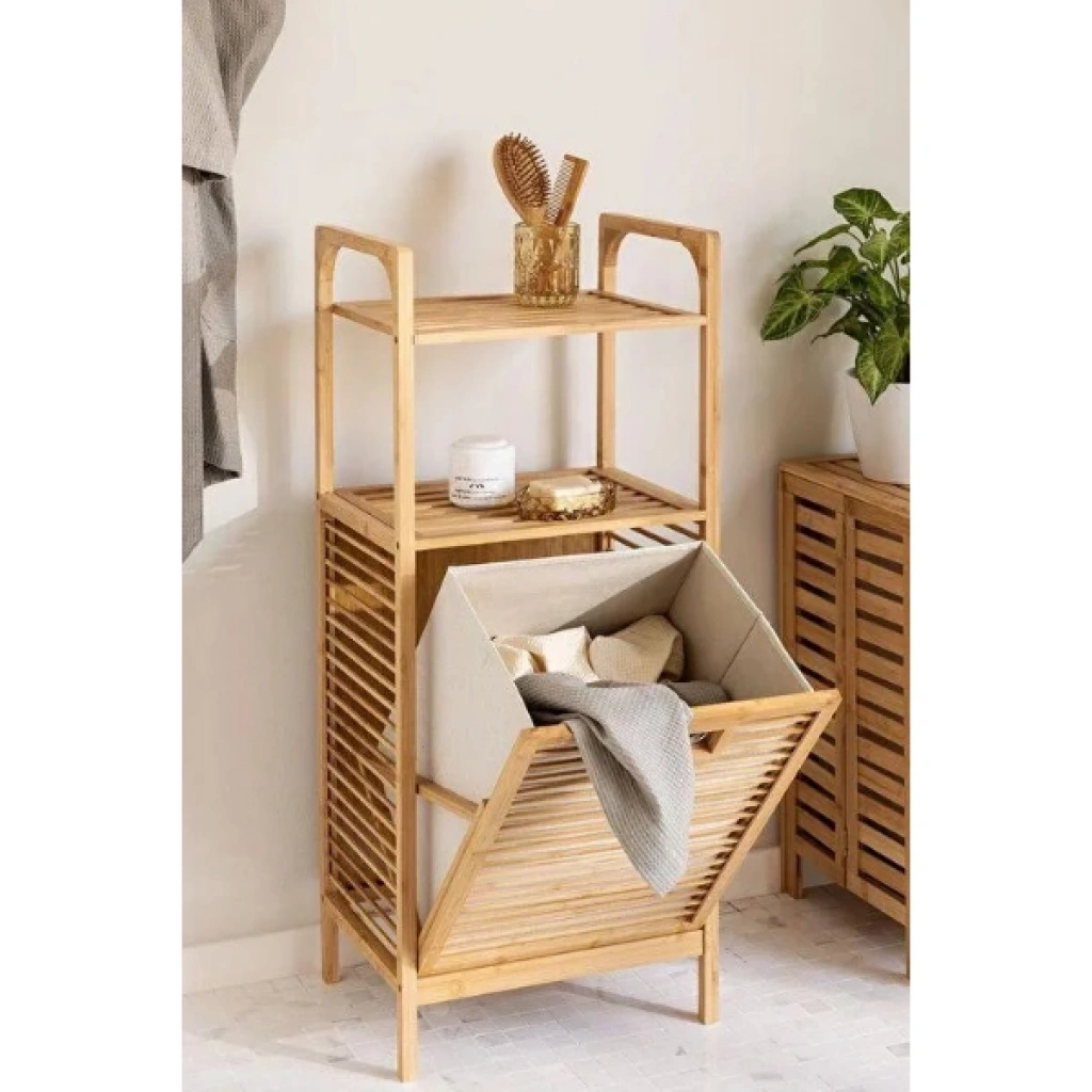 2 ORGANİZER RAFLI AHŞAP BAMBU ÇEK-AÇ KİRLİ SEPETİÜrün Özellikleri2 organizer raflı ahşap bambu çek-aç kirli sepeti, 40x35x95 cm ölçüleriyle hem fonksiyonel hem de estetik bir çözüm sunar. Çek-aç mekanizması sayesinde çamaşırların kolayca yerleştirilmesini ve çıkarılmasını sağlar. Üst kısmında yer alan 2 adet organizer raf, deterjan, havlu veya diğer banyo malzemelerini düzenlemek için ekstra alan sunar.Doğal bambu malzemeden üretilen yapısı dayanıklı, nem ve rutubete karşı dirençlidir. Çıkarılabilir kumaş iç haznesi hijyenik kullanım sağlarken, pratik taşıma kolaylığı sunar. Modern tasarımıyla banyo, çamaşır odası veya yatak odasında dekoratif bir görünüm kazandırır. Hem yerden tasarruf sağlar hem de düzenli bir yaşam alanı oluşturur.Paket İçeriği1 adet 2 Organizer Raflı Ahşap Bambu Çek-Aç Kirli Sepeti