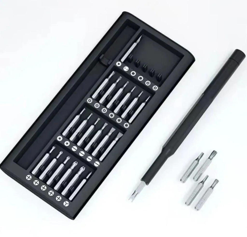 25 PARÇA TORNAVİDA SETİ1.24-in-1 tornavida seti: bu Set 24 farklı tornavida ucu içerir, bu da çok yönlü ve çeşitli görevler için uygundur. Cep telefonları, gözlükler, kameralar, saatler ve diğer ev eşyalarını onarmak için özelleştirilebilir.2. Geniş uygulama yelpazesi: kapsamlı tornavida uçları seti ile, bu set hem profesyonel hem de ev kullanım için mükemmeldir. Farklı onarım ve bakım görevlerini kolaylıkla halledebilmenizi sağlayan çok çeşitli vida tipleri ve boyutları kapsar.3. Uygun depolama: set, tornavida uçları için güvenli bir depolama sağlayan bir geçmeli kilitli plastik kutu ile birlikte gelir. Kutunun kompakt boyutu, araçlarınızın organize edilmesini ve erişilebilir olmasını sağlayarak taşımayı ve saklamayı kolaylaştırır.4. Dayanıklı ve güvenilir: tornavida uçları, dayanıklılık ve uzun ömürlü performans sağlayan yüksek kaliteli malzemelerden yapılmıştır. Sık kullanıma dayanacak şekilde tasarlanmıştır ve verimli vidalama için güvenilir bir tutuş sağlar.5. Ergonomik tasarım: tornavida sapı, rahat ve kaymaz bir tutuş sağlayan, akılda ergonomik prensiplerle tasarlanmıştır. Bu, hassas ve kontrollü kullanım sağlar, onarım sırasında hassas eşyalara kayma veya zarar verme riskini azaltır.