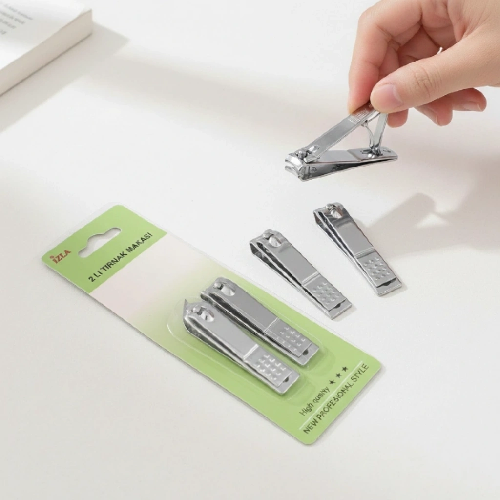 2'Lİ PROFESYONEL TIRNAK MAKASI SETİÜrün Özellikleri2'li Profesyonel Tırnak Makası Seti, el ve ayak tırnak bakımını pratik ve kontrollü şekilde yapmanızı sağlayan iki farklı tasarıma sahip makastan oluşur. Set içerisinde yer alan klasik model, kavislendirilmiş bıçak yapısı sayesinde tırnağın doğal formuna uyum sağlar ve düzgün kesim imkânı sunar. Diyagonal tasarıma sahip diğer makas ise özellikle köşe ve kenar bölgelerinde hassas işlem yapılmasına yardımcı olur. Keskin ve dayanıklı yapıya sahip profesyonel tırnak makası tasarımı, tırnak yüzeyini zorlamadan temiz bir kesim sağlar. Ergonomik gövde yapısı sayesinde elde rahat tutulur ve kayma yapmadan güvenli kullanım sunar. Günlük kişisel bakım rutinlerinde ya da detaylı manikür uygulamalarında tercih edilebilecek bu 2'li tırnak makası seti, hem ev kullanımı hem de profesyonel kullanım için uygundur. Kompakt boyutu sayesinde çanta içinde taşınabilir ve seyahatlerde rahatlıkla kullanılabilir.Ürün Teknik Özellikleri Özellik Açıklama Ürün Adı 2'li Profesyonel Tırnak Makası Seti Set İçeriği 1 adet klasik tırnak makası, 1 adet diyagonal tırnak makası Bıçak Yapısı Kavisli ve diyagonal kesim tasarımı Kullanım Alanı El ve ayak tırnak bakımı Kullanım Türü Kişisel ve profesyonel kullanım Paket İçeriği1 adet klasik tırnak makası1 adet diyagonal tırnak makası