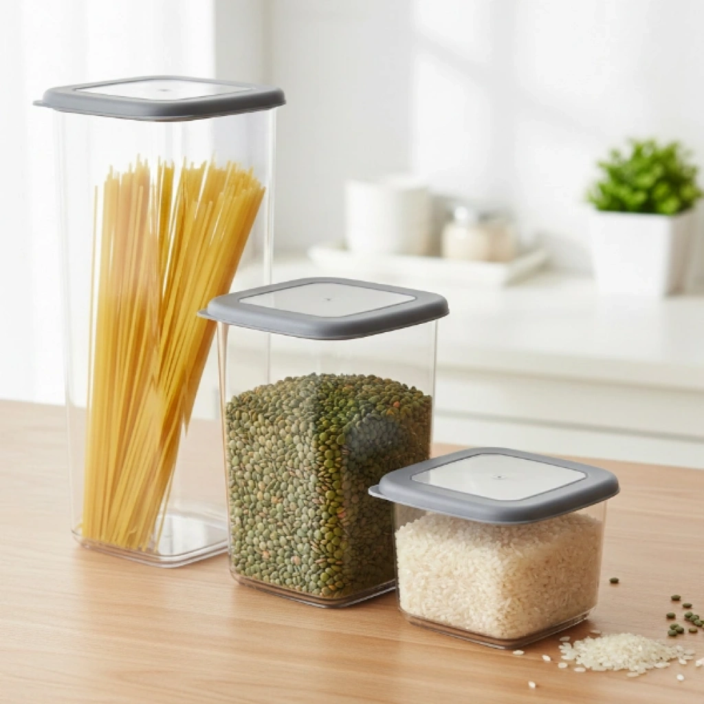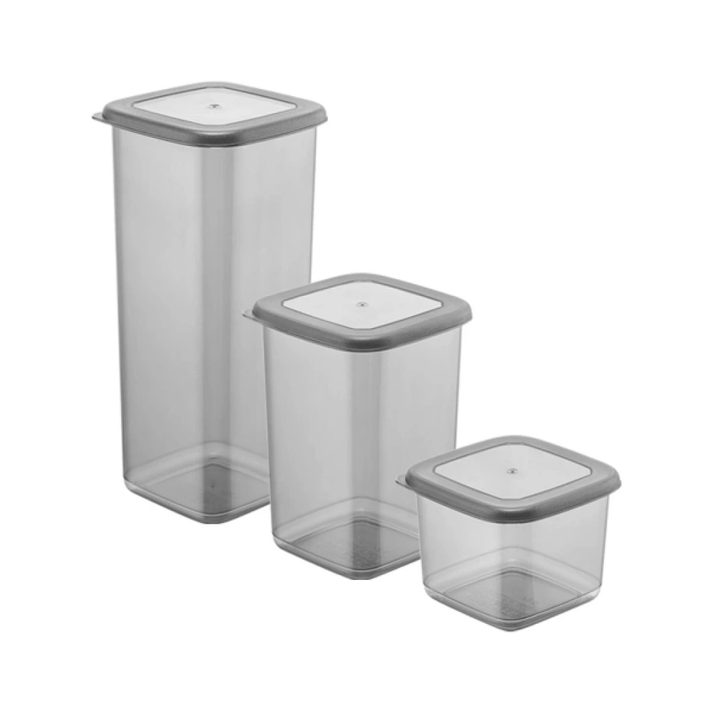 3'LÜ KARE ERZAK SETİÜrün ÖzellikleriKare Erzak Seti, mutfakta düzen ve pratik saklama alanı oluşturmak isteyenler için tasarlanmış 3’lü saklama kabı setidir. Farklı yükseklik ve hacim seçeneklerine sahip kaplar sayesinde bakliyat, makarna, kuruyemiş ve benzeri gıdaları düzenli şekilde muhafaza edebilirsiniz. Şeffaf gövde yapısı ile içerisindeki ürünü kolayca görmenizi sağlar ve mutfak dolaplarında estetik bir görünüm sunar. Kare formu sayesinde dolap içinde yer tasarrufu sağlar ve üst üste yerleştirmeye uygundur. Sızdırmaz kapak tasarımı ile gıdaların tazeliğini korumaya yardımcı olan bu kare erzak kabı seti, hem ev hem de ofis mutfakları için ideal bir saklama kabı çözümü sunar.Ürün Teknik Özellikleri Özellik Açıklama Ürün Adı Kare Erzak Seti Adet 3’lü set Ölçü 1 11 x 11 x 8,5 cm Hacim 1 0,55 L Ölçü 2 11 x 11 x 16 cm Hacim 2 1,25 L Ölçü 3 11 x 11 x 24,5 cm Hacim 3 1,75 L Tasarım Kare form, kapaklı saklama kabı Paket İçeriği1 adet 0,55 L erzak kabı (11x11x8,5 cm)1 adet 1,25 L erzak kabı (11x11x16 cm)1 adet 1,75 L erzak kabı (11x11x24,5 cm)