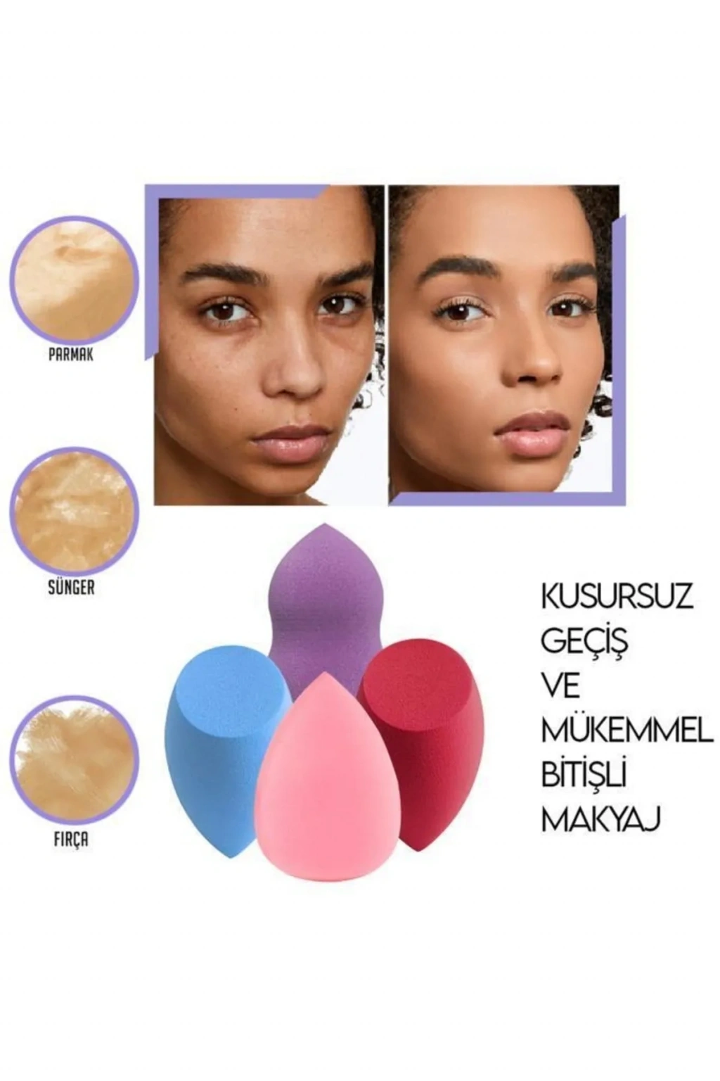 4'lü Tutmalı Pudra Makyaj Süngeri Puf Seti