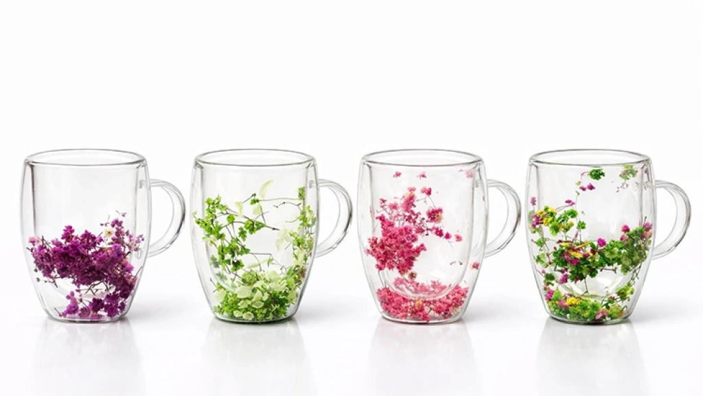 Çift Camlı Çiçekli Borosilikat Kupa Bardak - Model 2