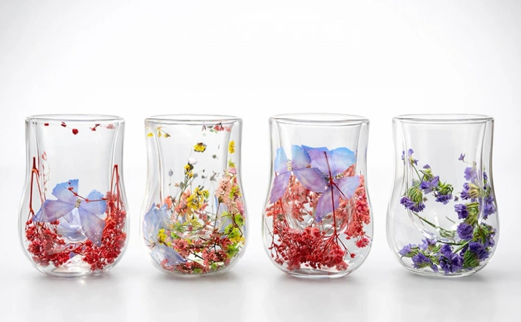 Çift Camlı Çiçekli Su Bardağı