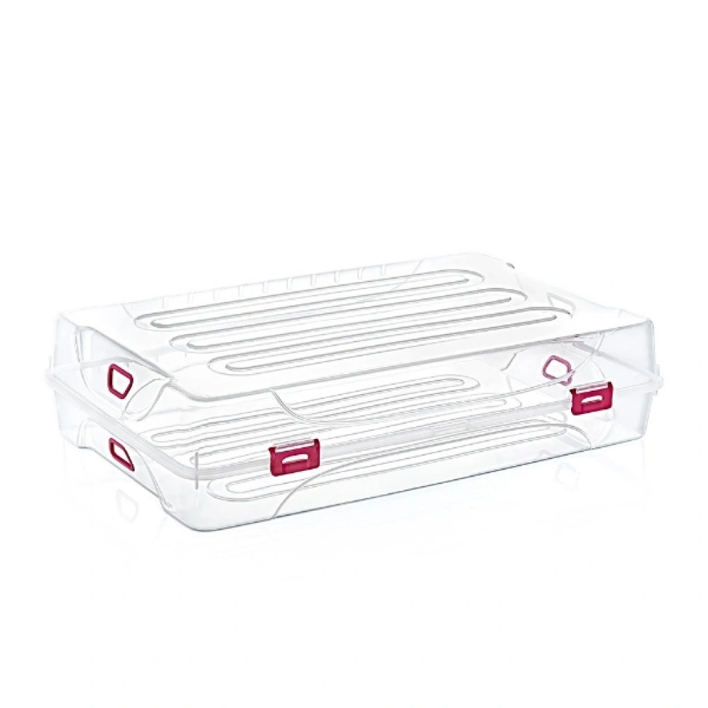 ÇİZME SAKLAMA KUTUSU Ürün ÖzellikleriÇizme Saklama Kutusu, ayakkabı dolaplarınızda düzen sağlamak ve uzun yapılı çizmelerinizi dış etkenlerden korumak için mükemmel bir çözümdür. 61x37x14 cm boyutlarındaki geniş ve uzun formlu tasarımı, çizmelerin katlanmadan, formunu bozmadan saklanmasına olanak tanır. Kristal berraklığındaki şeffaf gövde yapısı, kutuyu açmanıza gerek kalmadan içerisindeki ayakkabıyı kolayca tespit etmenizi sağlar. Yan kısımlarda bulunan kilitli kapak mekanizması, kutunun güvenli bir şekilde kapanmasını sağlayarak toz, nem ve koku girişini engeller. Üst üste istiflenebilir özelliği sayesinde dolap içlerinde veya yatak altlarında maksimum yer tasarrufu sağlar. Dayanıklı ve sağlığa uygun plastik materyalden üretilen bu çok amaçlı saklama kutusu, sadece ayakkabılar için değil, tekstil ürünleri veya ev aksesuarlarını organize etmek için de idealdir. Hijyenik ve şık tasarımıyla bu şeffaf düzenleyici, yaşam alanlarınızdaki karmaşayı sonlandırarak eşyalarınızın ömrünü uzatır.Ürün Teknik ÖzellikleriÖzellikAçıklamaÜrün AdıÇizme Saklama KutusuBoyutlar61 x 37 x 14 cmRenkŞeffaf Gövde - Kırmızı Kilit DetaylıMalzemeYüksek Kaliteli, Dayanıklı PlastikKapak SistemiÇift Yan Kilitli KapakTasarımDikdörtgen Uzun Form - İstiflenebilirKullanım AlanıÇizme, Ayakkabı, Tekstil ve Genel SaklamaPaket İçeriği1 Adet Şeffaf Çizme Saklama Kutusu