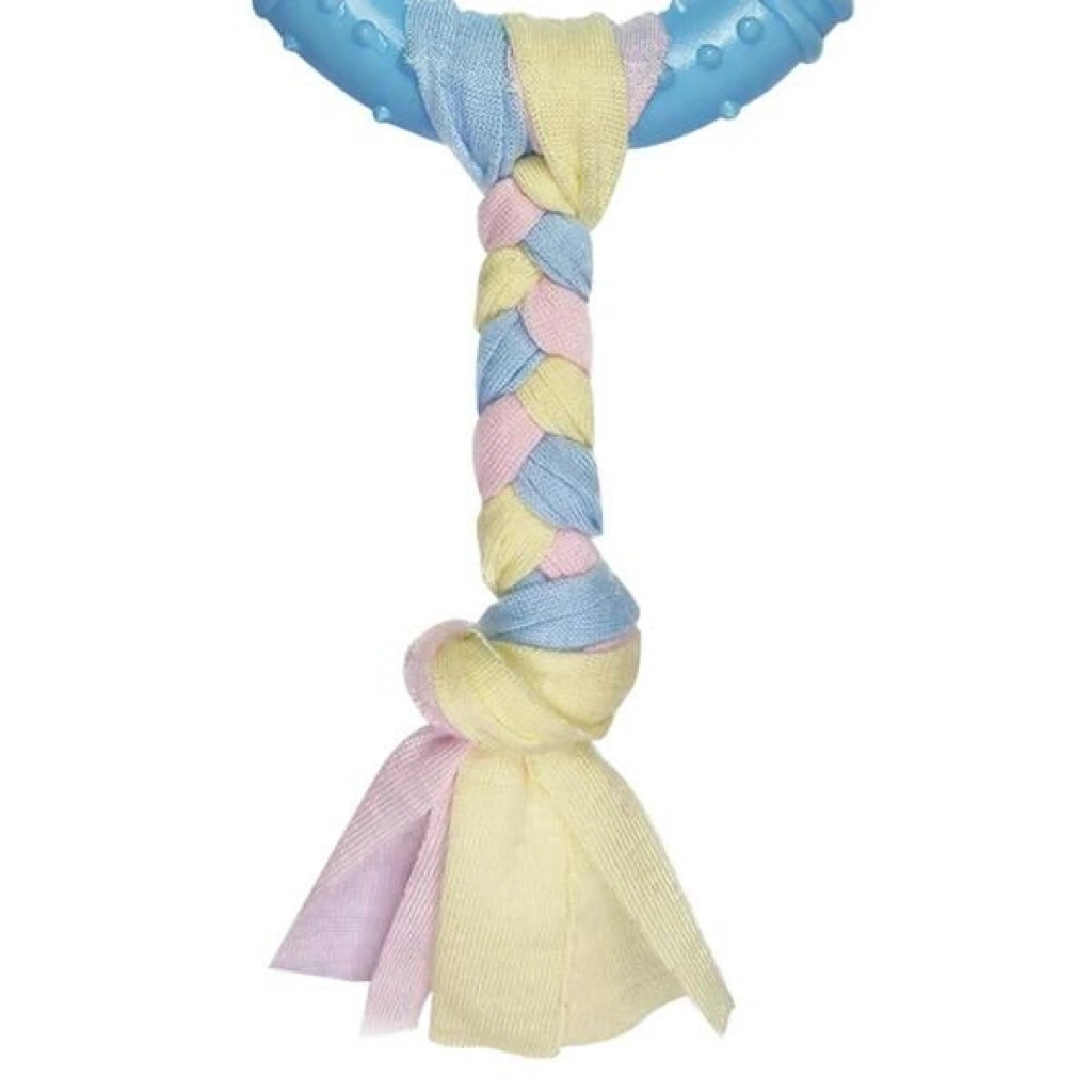 DAYANIKLI KÖPEK DİŞ KAŞIYICI VE ÇİĞNEME OYUNCAĞIÜrün ÖzellikleriDayanıklı Köpek Diş Kaşıyıcı ve Çiğneme Oyuncağı, köpeklerin doğal çiğneme ve oyun ihtiyaçlarını karşılamak üzere tasarlanmış güvenli ve eğlenceli bir oyuncaktır. Sağlam ve esnek malzemeden üretilen halkalı yapısı, diş kaşıma dönemindeki yavru köpekler için ideal bir rahatlama sağlar. Üzerindeki kabartmalı yüzeyler diş ve diş etlerini nazikçe masaj yaparak ağız sağlığını destekler. Renkli örgü kumaş tutucu kısmı köpeğin dikkatini çeker ve interaktif çekme-çekiştirme oyunları için mükemmeldir. Ev içi ve dış mekân kullanımına uygun olan bu oyuncak, köpeklerin enerjilerini doğru kullanmalarına yardımcı olurken aynı zamanda stres azaltıcı bir oyun deneyimi sunar. Küçük ve orta ırklar için ideal bir oyun arkadaşıdır.Paket İçeriği1 Adet Köpek Diş Kaşıyıcı ve Çiğneme Oyuncağı