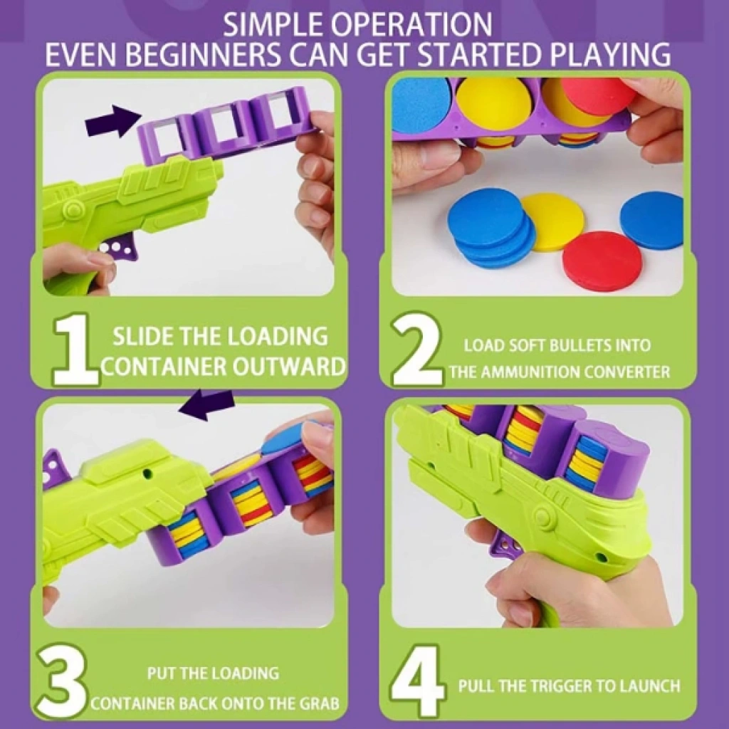 DİSK ATAN OYUNCAK TABANCAÜrün ÖzellikleriDisk Atan Oyuncak Tabanca, çocuklar için eğlenceli vakit geçirme imkânı sunarken aynı zamanda evcil hayvanlar için de interaktif bir oyun deneyimi sağlar. Yumuşak malzemeden üretilmiş 25 adet disk ile güvenli bir şekilde kullanılabilir. Tabancanın kolay şarj edilebilen haznesi sayesinde diskler hızlıca yüklenir ve tetiğe basıldığında güvenli bir şekilde fırlatılır.Renkli diskleri sayesinde çocukların ilgisini çekerken aynı zamanda köpeğinizin veya kedinizin dikkatini de cezbederek enerjisini atmasına yardımcı olur. Yumuşak diskler evde mobilyalara zarar vermez, dış mekânda ise evcil dostunuz için keyifli bir koşu oyunu sağlar. Kullanımı kolay olan bu tabanca, çocuklar için güvenli ve eğlenceli bir oyun aracı, evcil hayvan sahipleri içinse pratik bir egzersiz ve oyun aracıdır.Hafif ve dayanıklı yapısı sayesinde kolay taşınabilir ve her ortamda kullanılabilir. Hem eğlence hem de eğitim amaçlı kullanılabilen bu oyuncak, çocukların motor becerilerini geliştirmesine, evcil hayvanların ise daha aktif ve mutlu olmasına katkı sağlar.Paket İçeriği1 adet Disk Atan Tabanca25 adet Yumuşak Disk