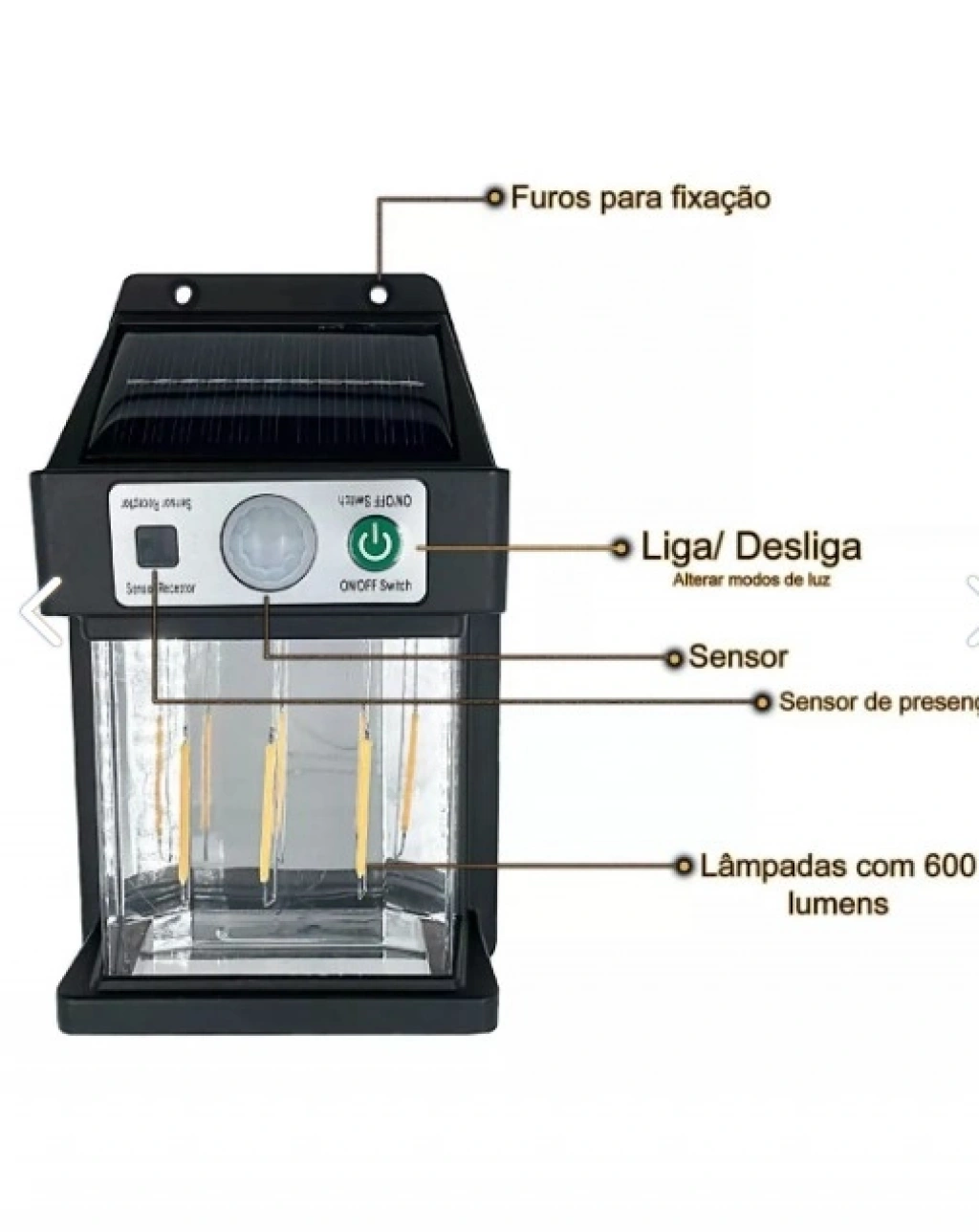 Güneş Enerjili Hareket Sensörlü Duvar LambasıÜrün Açıklaması:Güneş enerjili hareket sensörlü duvar lambası, açık alanlarınız için ideal bir aydınlatma çözümü sunar. Güneş enerjisiyle şarj edilen bu lamba, enerji tasarrufu sağlar ve kablo gerektirmeyen kolay montaj imkanı sunar. Hareket algılayıcısı ile yaklaştığınızda otomatik olarak yanar, böylece güvenlik sağlar. Bahçe, veranda, garaj gibi alanlar için mükemmel bir tercihtir. Suya ve hava koşullarına dayanıklı yapısıyla uzun ömürlüdür.Enerji: Güneş enerjisi ile şarjSensör: Hareket algılamaMontaj: Kablo gerektirmeyen kolay montajKullanım Alanları: Bahçe, veranda, garaj, avluSuya Dayanıklılık: EvetPaket İçeriği :1 Adet Güneş Enerjili Hareket Sensörlü Duvar lambası
