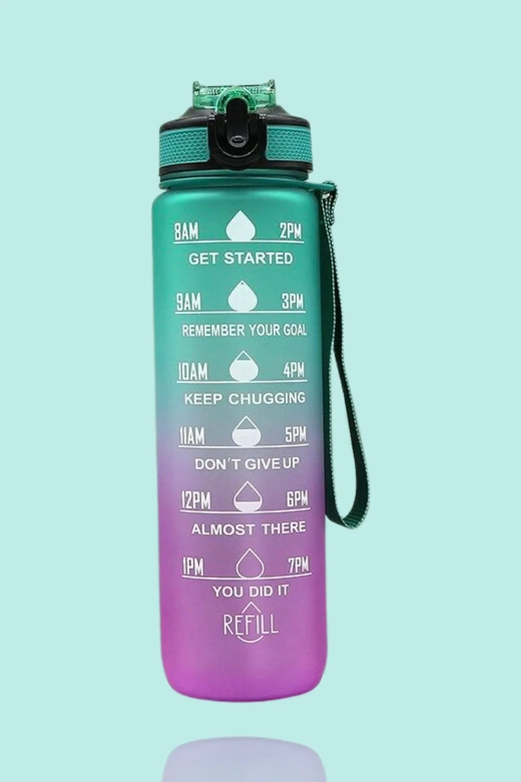 GÜNLÜK MOTİVASYON SU MATARASI 1000 ml Motivasyonel Zaman Çizelgeli Su Matarası İlham verici alıntılar ve net zaman işaretçisi ile bu su matarası günlük su alımını izlemek ve gün boyunca su tüketimini teşvik etmek için harikadır.Birbirinden farklı canlı renk tasarımlarıyla yalnızca kendiniz için değil, aynı zamanda sevdikleriniz için güzel bir hediyedir.Bu uzun ömürlü su matarası sayesinde günlük pet şişe kullanımınızı azaltabilirsiniz.1000 ml. kapasitesi ile suyunuzu günde birçok kez yeniden doldurmak zorunda kalma sorununu çözer.Açılabilir geniş ağzı sayesinde buz küpleri ve meyvelerle doldurulması ve temizlenmesi kolaydır.Gelişmiş tasarımı sayesinde su akıtmaz akıntı yapmaz, farklı kullanım seçenekleri ile pipetli veya pipetsiz olarak kullanılabilir, özel sapı ile her yere kolaylıkla taşınabilir.BPA VE TOKSİT MADDE İÇERMEZ SAĞLIK DOSTU BİR ÜRÜNDÜR !Lütfen bulaşık makinesinde veya sıcak su ile yıkamayınız.Sıcak içecekler için uygun değildir.Kapağı 2 kademeli açılmaktadır, kapağı sonuna kadar ittirin, kapak sabitlenecektir, böylelikle suyunuzu daha rahat içebilirsiniz.Hedefe ulaşmadan bırakmak yok!Planlayıcı ve motive edici tasarımı sizi günlük su içme hedefinize ulaşmaya teşvik eder.Kolay taşınabilir şık tasarımıyla antrenmanlarınızda ve gün içinde yanınızdan ayırmak istemeyeceksiniz.Paket İçeriği 1 adet günlük motivasyon su matarasıÜrünler Stok Durumuna Göre Karışık Renk Gönderilecektir!!!