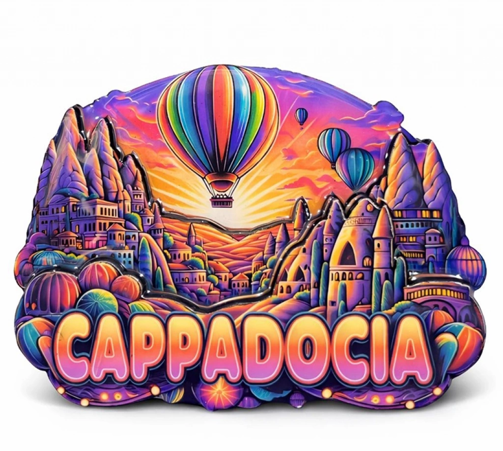 Kapadokya Temalı Ahşap Buzdolabı Magneti Model 2