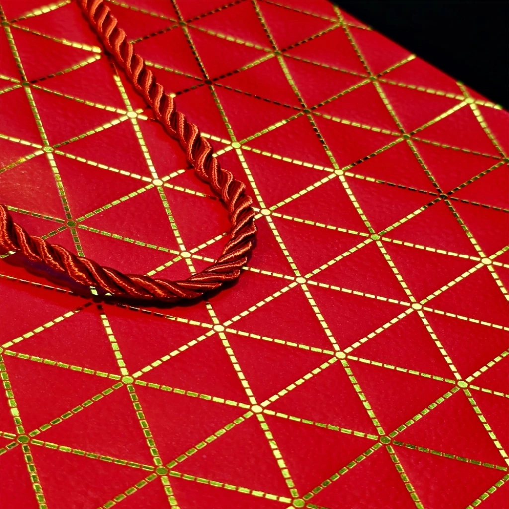 Kırmızı Geometrik Desenli Orta Boy Karton Hediye Çantası