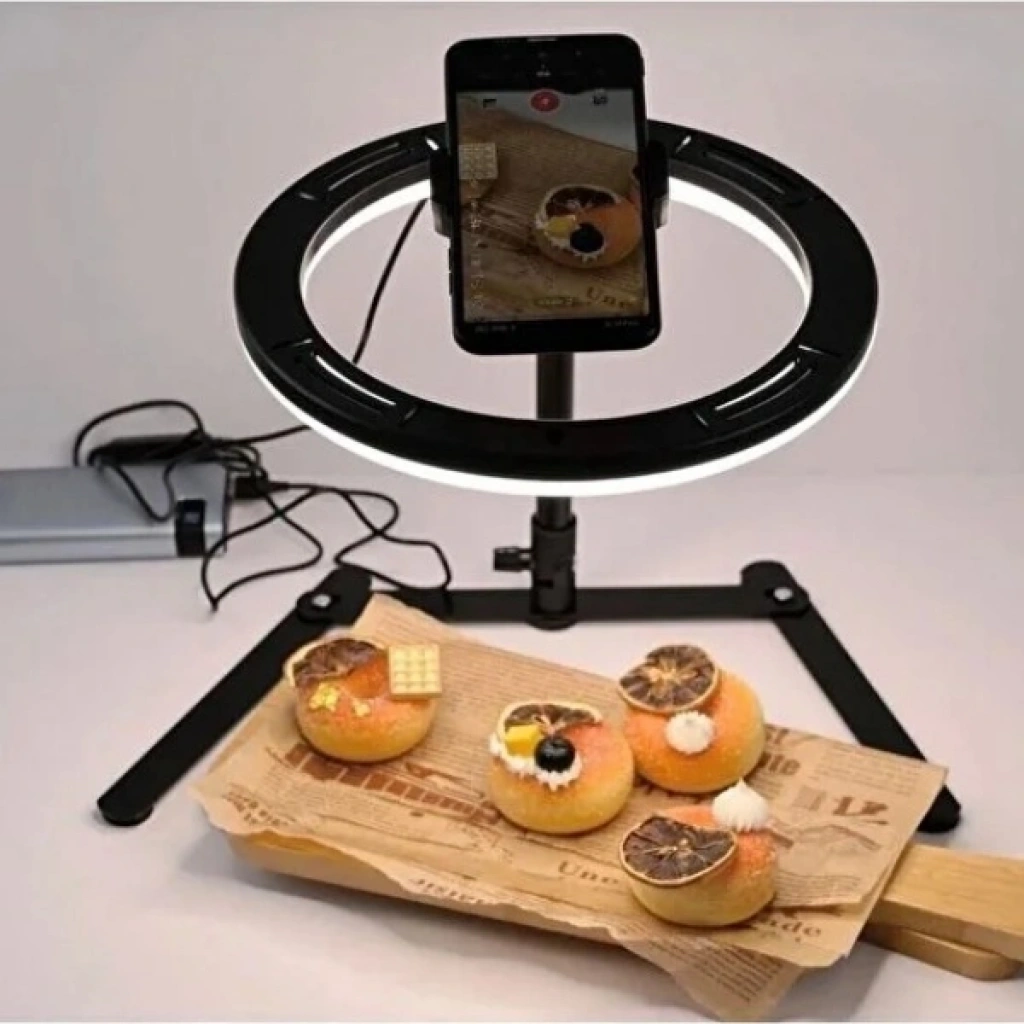MASAÜSTÜ ÇEKİM IŞIĞIÜrün ÖzellikleriMasaüstü çekim ışığı, içerik üreticileri, online satış yapanlar ve günlük kullanımda net aydınlatma ihtiyacı duyanlar için pratik ve profesyonel bir çözüm sunar. I şeklindeki ayak tasarımı sayesinde masa üzerinde minimum alan kaplar ve dengeli bir kullanım sağlar. Yüksekliği ayarlanabilir yapısı ile 25 ila 45 cm arasında konumlandırılabilir, böylece farklı çekim açılarına ve masa düzenlerine kolayca uyum sağlar.180 derece dönebilen başlığı sayesinde ışık açısı istenilen yönde ayarlanabilir ve homojen bir aydınlatma elde edilir. Ayarlanabilir telefon klipsi, farklı telefon modelleriyle uyumlu olup 180 derece hareket kabiliyeti sunarak video, fotoğraf, canlı yayın ve görüntülü görüşmelerde ideal çekim açısını yakalamanıza yardımcı olur. Masaüstü kullanım için tasarlanan bu çekim ışığı, ürün çekimleri, sosyal medya içerikleri, makyaj videoları ve online toplantılar için net, gölgesiz ve dengeli bir ışık sağlar. Dayanıklı gövdesi ve kolay kurulum özelliği sayesinde hem evde hem ofiste uzun süreli kullanım için uygundur.Paket İçeriği1 adet Masaüstü Çekim Işığı