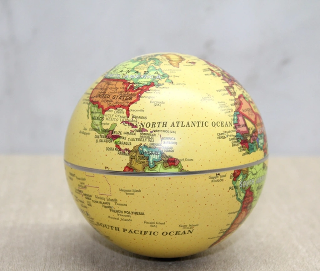 MASAÜSTÜ DÖNEN DÜNYA KÜRE - MODEL 3Ürün ÖzellikleriMasaüstü Dönen Dünya Küre - Model 3, 10,6 cm kompakt boyutu ile küçük alanlarda bile rahatlıkla konumlandırılabilen şık bir dekoratif objedir. Küre formunun dengeli ve akıcı dönüş mekanizması sayesinde hem görsel hem de işlevsel bir kullanım sunar. Sarı zemin tonları üzerine detaylandırılmış harita baskısı, klasik atlas görünümünü modern bir masaüstü tasarımıyla bir araya getirir. Özellikle çalışma masası, kitaplık ve ofis alanlarında dikkat çekici bir aksesuar olarak öne çıkar ve ortama entelektüel bir hava katar. Küçük boyutuna rağmen net harita detayları sayesinde hem dekoratif hem de eğitici bir obje olarak değerlendirilebilir. Minimal ölçüleri sayesinde dar alanlar için ideal bir küçük masaüstü dünya küresi seçeneğidir. Aynı zamanda ofis ve ev dekorasyonuna uyum sağlayan kompakt yapısıyla dönen dekoratif dünya küre arayan kullanıcılar için pratik ve estetik bir alternatiftir.Ürün Teknik ÖzellikleriÖzellikAçıklamaÜrün AdıMasaüstü Dönen Dünya Küre - Model 3Boyut10,6 cmTasarımKlasik Atlas BaskılıFonksiyonSerbest Dönen Küre MekanizmasıKullanım AlanıEv, Ofis, Çalışma Masası, KitaplıkPaket İçeriği1 Adet Masaüstü Dönen Dünya Küre - Model 3
