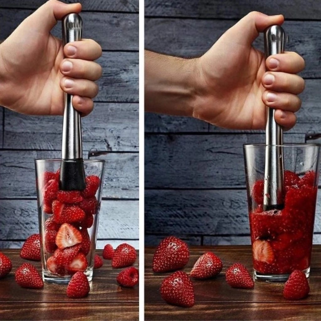 MEYVE EZİCİ TOKMAK Ürün ÖzellikleriMeyve, bitki ve buz gibi malzemeleri kolayca ezebilmeniz için tasarlanmış Paslanmaz Çelik Meyve Ezici Tokmak, hem ev kullanımı hem de profesyonel barlar için ideal bir araçtır. Sağlam ve dayanıklı paslanmaz çelik gövdesi uzun yıllar formunu korurken, alt kısmındaki özel tasarım oluklu yüzey meyveleri daha hızlı ve eşit biçimde ezmenizi sağlar. Mojito, kokteyl, limonata, detoks içeceği veya soğuk çay hazırlarken en iyi aromayı elde etmenize yardımcı olur. Kaymaz yapısı sayesinde elden kaymaz, güvenli ve rahat bir kullanım sunar. Temizlemesi son derece kolay olan bu tokmak, mutfakta pratikliğe önem veren herkes için vazgeçilmez bir yardımcıdır.Paket İçeriği1 adet Meyve Ezici Tokmak
