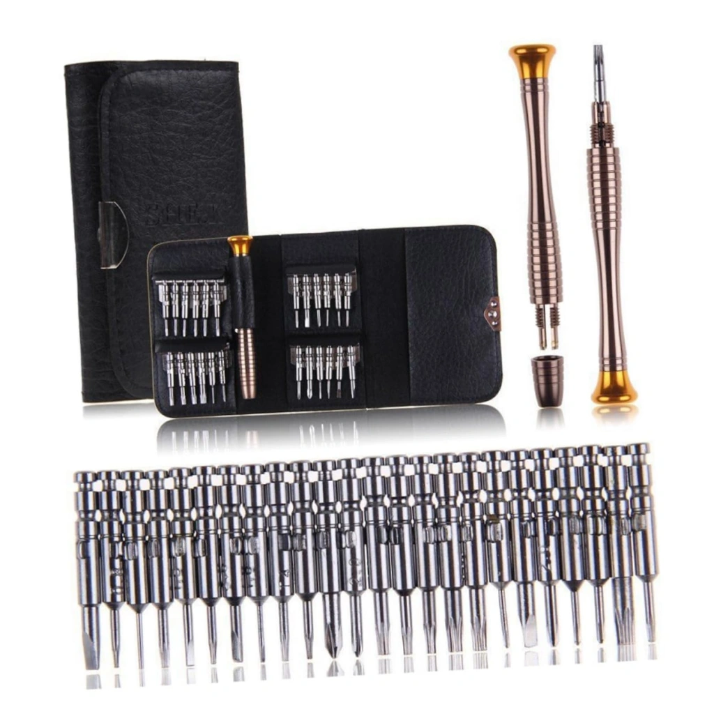 MİNİ CÜZDAN TORNAVİDA SETİMini Cüzdan Tornavida Seti: Küçük, Pratik ve Güçlü!Mini Cüzdan Tornavida Seti, hassas elektronik cihazlar ve cep telefonları gibi küçük tamiratlar için ideal bir çözümdür. Set, 24 adet tornavida ucu ve 1 adet tornavida kaleminden oluşan toplam 25 parçadan oluşmaktadır. Kompakt boyutlarıyla (10.5 cm x 6.5 cm x 2 cm) her yere kolayca taşınabilir ve her zaman elinizin altında bulundurabilirsiniz.Dayanıklı çıtçıtı sayesinde cüzdan sağlam bir şekilde kapanır ve açılmaz. Tornavida uçları, cüzdanın içinde güvenli bir şekilde sabitlenmiştir ve yerinden çıkmaz. Sadece 112 gram ağırlığında olan bu set, hafifliği ve taşınabilirliği ile kullanım kolaylığı sunar.Mini Cüzdan Tornavida Seti, profesyonel kullanıcılar için geliştirilmiş olup, hassas elektronik ürünlerin ve cep telefonlarının tamiratında en iyi yardımcınız olacak şekilde tasarlanmıştır. Ergonomik tasarımı ve yüksek kaliteli malzemeleri ile uzun ömürlü kullanım sağlar. Kompakt ve pratik bu set ile her türlü tamirat işlemini kolaylıkla gerçekleştirebilirsiniz.Paket İçeriği1 adet mini cüzdan tornavida seti