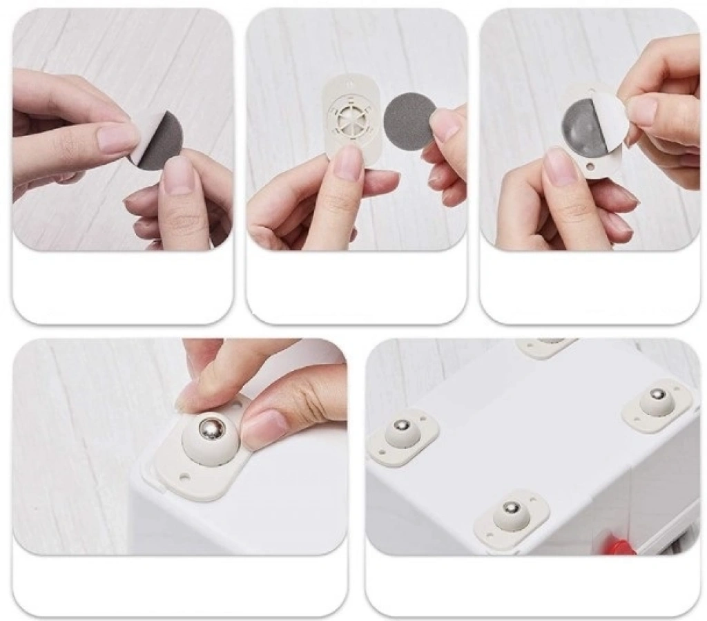 Mobilya Eşya Kaydırma Taşıma AparatıEŞYATAŞIMA APARATIÜrün ÖzellikleriKüçük döner tekerlekler, makyaj kutusu, mutfak, masaüstü ve alt raf depolama için çok uygun, uygulandığında tamamen sessiz,herhangi bir açıya kayabilir.Tekerleklerinuygulama alanı temiz olmalıdır. Yapışkan teker istenilen bölgeye yapıştırıl ve24 saat beklenir, sonra kullanıma hazır istediğiniz yere hareketettirebilirsiniz.ÜrünEbatları4,5 x 2,8x 1,5 cmPaketİçeriği4 Adet Mobilya EşyaKaydırma Taşıma Aparatı