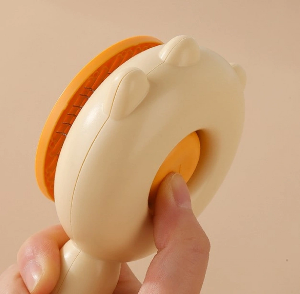 PATİ TASARIMLI OTOMATİK TEMİZLENEN EVCİL HAYVAN TARAĞIÜrün ÖzellikleriPati tasarımlı otomatik temizlenen evcil hayvan tarağı, kedi ve köpeklerin tüy bakımını pratik, hızlı ve konforlu hale getirmek için tasarlanmıştır. Ergonomik sapı sayesinde ele rahat oturur ve tarama sırasında kontrolü artırarak hem evcil hayvanın hem de kullanıcının konforunu ön planda tutar. Tarak arkasında bulunan pratik düğme mekanizması, tarama sırasında toplanan tüylerin saniyeler içinde yüzeye itilmesini sağlar ve tek hamlede temizlenmesine imkân tanır. Bu özellik sayesinde tarak üzerinde biriken tüylerle uğraşmadan hijyenik ve zahmetsiz bir kullanım sunar. Yuvarlatılmış tarak uçları, cilde zarar vermeden nazikçe tarama yaparak ölü tüylerin, tozun ve kirin etkili şekilde toplanmasına yardımcı olur. Düzenli kullanımda tüy dökülmesini azaltmaya destek olurken, evcil hayvanın tüylerinin daha bakımlı ve parlak görünmesine katkı sağlar. Günlük bakım rutini için uygun olan bu tarak, ev ortamında kolay kullanım sunar ve evcil hayvan sahipleri için vazgeçilmez bir bakım ürünüdür.Paket İçeriği1 adet Pati Tasarımlı Otomatik Temizlenen Evcil Hayvan Tarağı