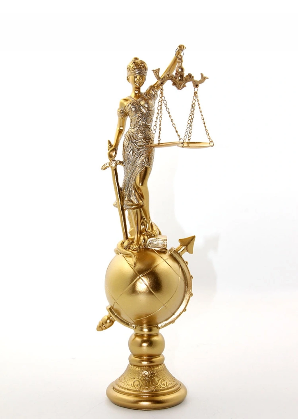POLYESTER DÜNYA KÜRE ÜZERİNDE ADALET BİBLOSU MODEL 2Ürün ÖzellikleriPolyester Dünya Küre Üzerinde Adalet Biblosu Model 2, adaletin sembolü olarak tasarlanmış bir figürdür. Gözleri bağlı bir kadın figürü, terazi ve kılıç ile birlikte dünya küresinin üzerinde yer alır. Altın ve gümüş detaylarla işlenmiş bu zarif figür, adaletin simgesini görsel olarak sunarken, şıklık ve anlam taşır. Yüksek kaliteli polyester malzeme ile üretilmiş olup, estetik tasarımı ile ofisler veya evler için mükemmel bir dekorasyon öğesidir.Paket İçeriği1 Adet Polyester Dünya Küre Üzerinde Adalet Biblosu Model 2