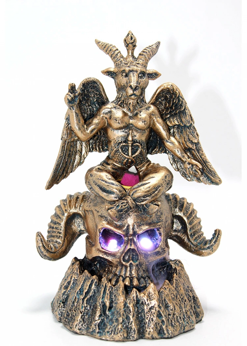 POLYESTER GERİ AKIŞ TÜTSÜLÜKÜrün ÖzellikleriPolyester Geri Akış Tütsülük, boynuzlu kuru kafa figürü ve gotik tasarımıyla dikkat çeken benzersiz bir dekoratif tütsülük modelidir. Dayanıklı polyester malzeme, ürünün uzun ömürlü ve kullanışlı olmasını sağlarken, detaylı gotik işçilik ve boynuzlu kuru kafa figürü mekanınıza estetik ve gizemli bir dokunuş katar. Geri akış özelliği, tütsü dumanını etkileyici bir şekilde aşağı doğru yönlendirerek görsel bir şölen yaratır. Hem meditatif ritüelleriniz hem de gotik bir dekorasyon için ideal bir seçimdir.Paket İçeriği1 adet Polyester Geri Akış Tütsülük