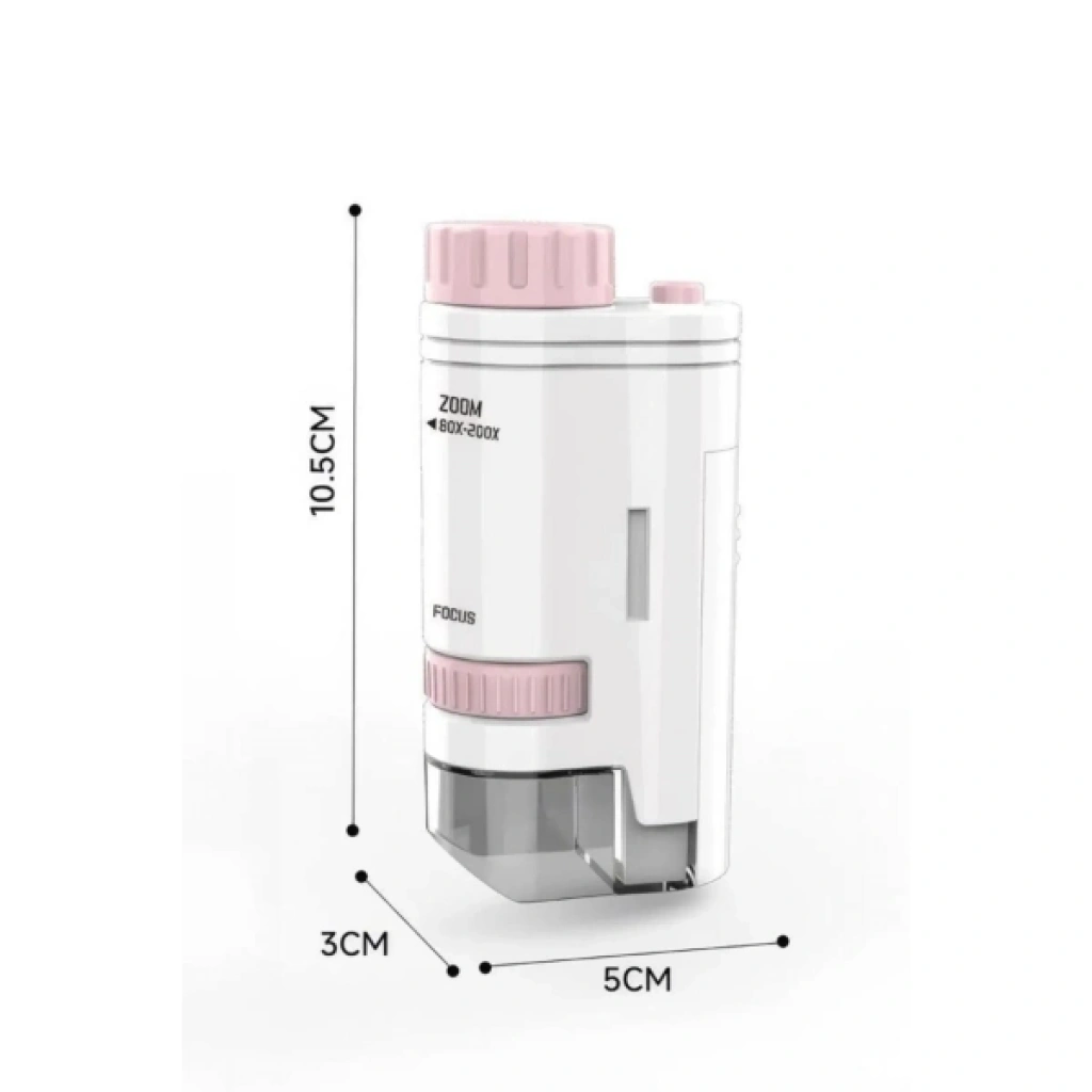 PORTATİF MİNİ MİKROSKOPÜrün ÖzellikleriPortatif mini mikroskop, 10.5 cm x 5 cm x 3 cm boyutlarıyla kompakt ve taşınabilir bir kullanım sunar. 80x ila 200x arasında yakınlaştırma yapabilen zoom özelliği sayesinde detayları net şekilde inceleme imkânı sağlar. Dahili LED aydınlatması sayesinde karanlık ortamlarda bile net görüntü elde edilebilir. Üzerindeki odaklama ve yakınlaştırma ayar düğmeleriyle görüntü kontrolü kolayca yapılabilir. El tipi tasarımı ile okul projeleri, doğa gözlemleri, hobi ve eğitim amaçlı kullanımlar için idealdir. Hafif yapısı sayesinde çantada taşınabilir ve istenilen her yerde anında kullanılabilir. Çocuklar ve yetişkinler için eğlenceli ve öğretici bir üründür.Paket İçeriği1 Adet Portatif Mini Mikroskop