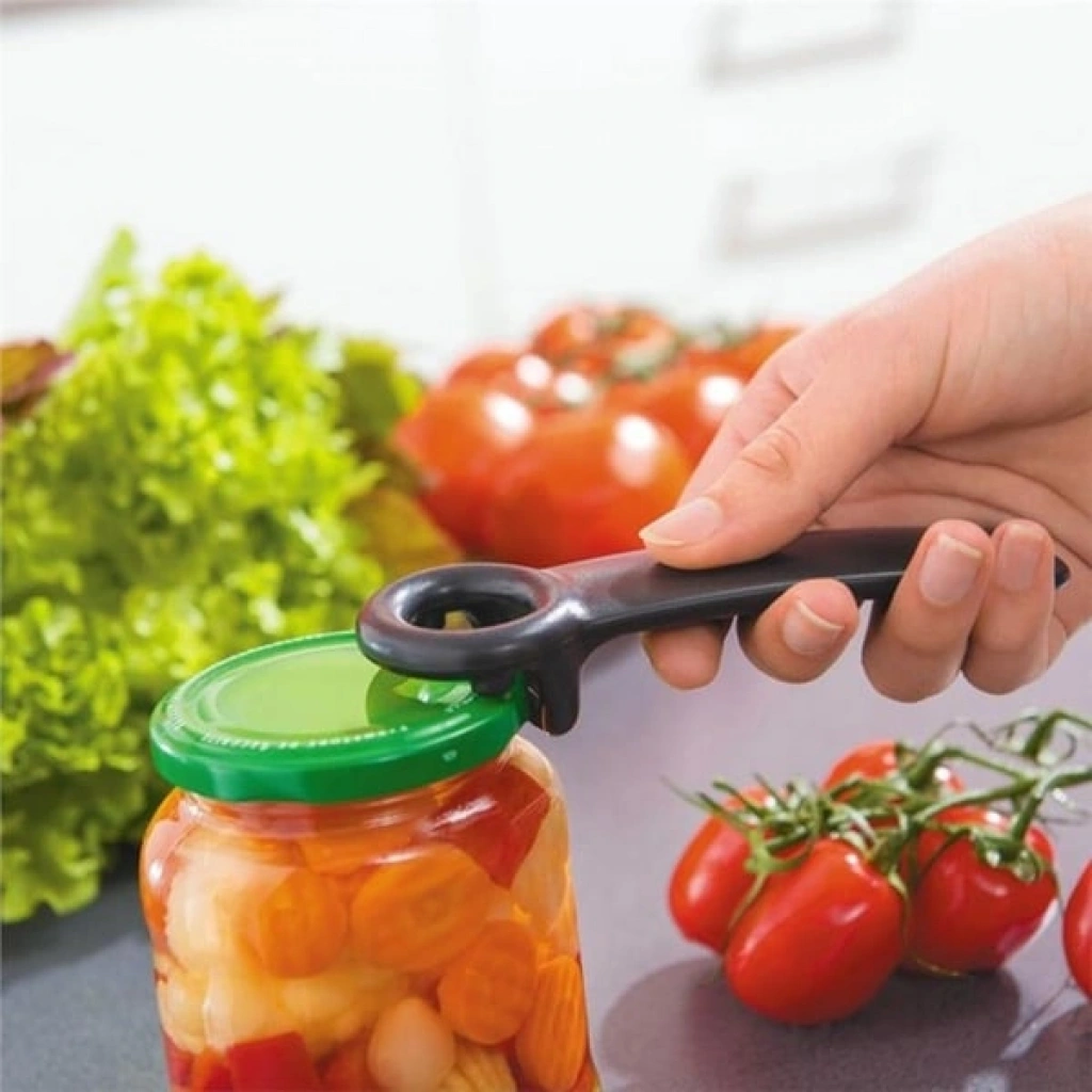 PRATİK ŞİŞE VE KAVANOZ KAPAĞI AÇACAĞIÜrün ÖzellikleriMutfakta kolaylık ve pratiklik arayanlar için tasarlanan Pratik Şişe ve Kavanoz Kapağı Açacağı, ergonomik yapısı ve şık tasarımıyla dikkat çeker. Renkli plastik sapı sayesinde kavrama kolaylığı sağlar ve açma işlemini zahmetsiz hale getirir. Dayanıklı metal kısmı ile kapaklara tam tutuş sağlar, küçük şişelerden büyük kavanozlara kadar geniş bir kullanım alanı sunar.Kompakt boyutu sayesinde çekmecelerde az yer kaplar, kolay taşınabilir yapısıyla kamp, piknik veya seyahatlerde de rahatlıkla kullanılabilir. Modern renk seçenekleriyle hem mutfak düzenine hem de estetiğine uyum sağlar. Uzun ömürlü plastik ve metal bileşimi sayesinde kırılma veya deformasyon riski olmadan yıllarca kullanılabilir.Her evin ihtiyacı olan bu pratik açacak, hem estetik hem de işlevsellik açısından mutfakta fark yaratır.Paket İçeriği1 adet pratik şişe ve kavanoz kapağı açacağı
