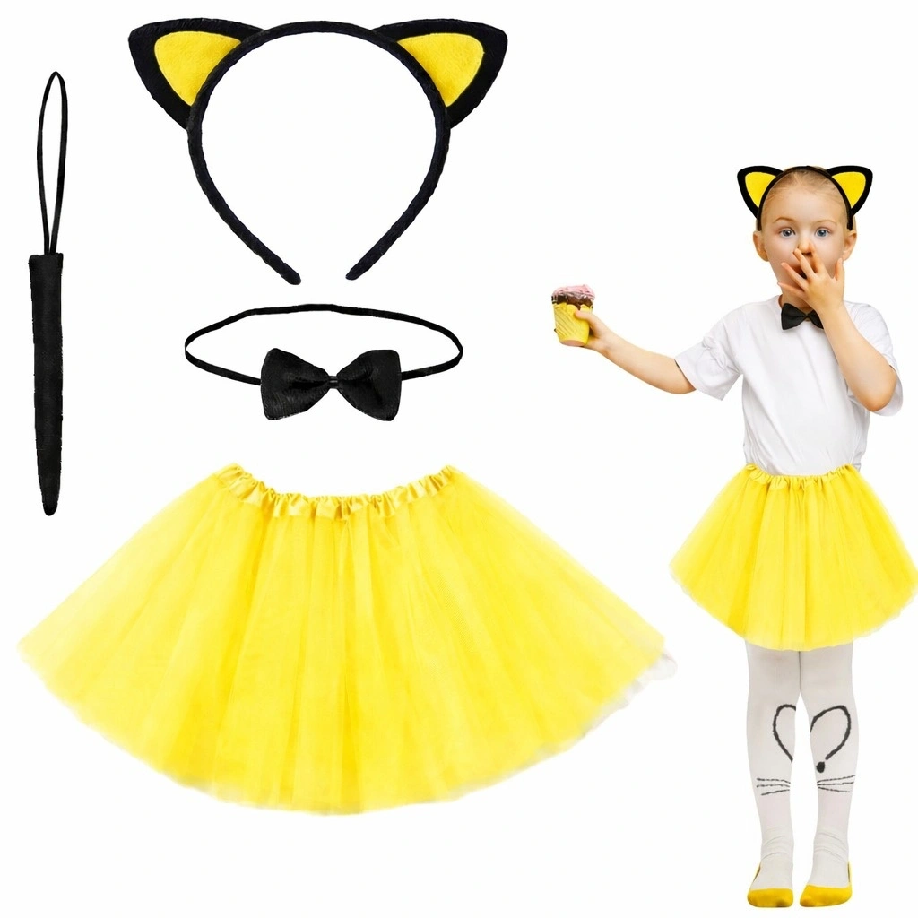 Sarı Renk Kedi Kostüm Seti - Tütü, Taç, Papyon, Kuyruk