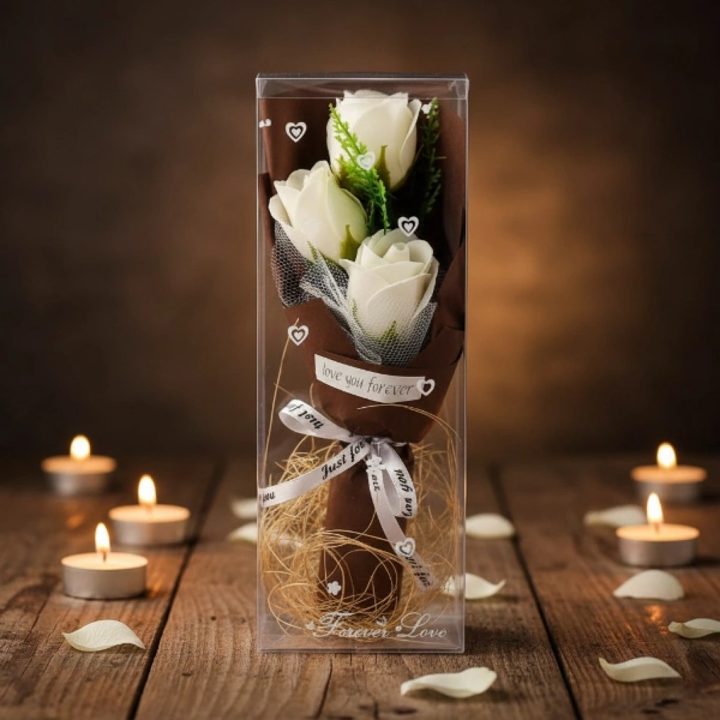 ŞEFFAF KUTULU ÜÇ GÜL BUKETİÜrün ÖzellikleriŞeffaf kutulu üç gül buketi, zarif ve romantik tasarımıyla özel günlerde anlamlı bir hediye alternatifi sunar. Şeffaf koruyucu kutu içerisinde sunulan üçlü gül aranjmanı, hem estetik bir görünüm sağlar hem de ürünün formunu uzun süre korumasına yardımcı olur. Minimal ve şık tasarımı sayesinde masa, komodin ve vitrin dekorasyonunda rahatlıkla sergilenebilir. Üçlü gül buketi tasarımı, sevgi ve zarafeti simgeleyen klasik bir hediye seçeneğidir. Özel günlerde, doğum günü, yıl dönümü veya sürpriz hediyelerde tercih edilebilen şeffaf kutulu gül buketi, dekoratif yapısı ile kalıcı bir hatıra niteliği taşır. Renk seçimi yapılamaz, ürün görseldeki renklerden biri karışık olarak gönderilir. Dekoratif gül aranjmanı, hem romantik hem de şık bir sunum arayanlar için ideal bir tercihtir.Ürün Teknik Özellikleri Özellik Açıklama Ürün Adı Şeffaf Kutulu Üç Gül Buketi Malzeme Dekoratif yapay gül ve şeffaf kutu Renk Görseldeki renklerden biri, karışık gönderim Kullanım Alanı Hediye ve dekoratif süs Paket İçeriği1 adet şeffaf kutulu üç gül buketi (renkler karışık gönderilir)