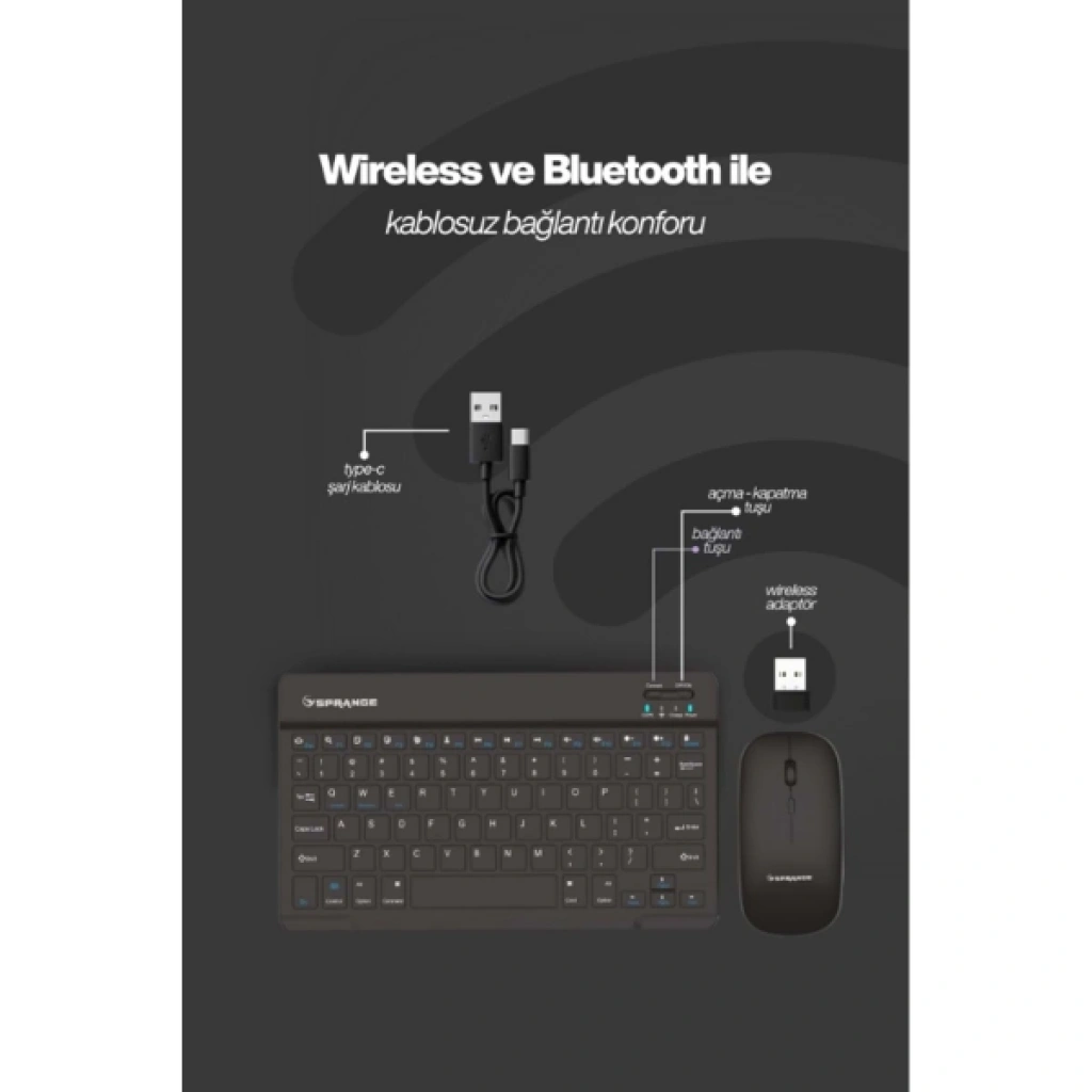 SİYAH KABLOSUZ KLAVYE VE MOUSE SETİÜrün ÖzellikleriSiyah Kablosuz Klavye ve Mouse Seti, modern ve sade tasarımıyla bilgisayar, telefon ve tablet gibi birçok cihaza uyum sağlayan pratik bir kullanım sunar. Multimedya özellikli Türkçe Q klavyesi hızlı ve rahat yazım deneyimi sağlarken kablosuz bağlantı teknolojisi çalışma alanında özgür hareket imkânı tanır. Hem klavye hem de mouse üzerinde bulunan Type-C şarj girişi sayesinde hızlı ve güvenilir şarj kolaylığı sunar. Hafif ve ince yapısı taşımayı kolaylaştırırken ergonomik mouse tasarımı uzun süreli kullanımda bile konfor sağlar. Günlük kullanım veya ofis ortamı için ideal olan bu set, verimliliği artıran fonksiyonel bir çözüm sunar.Paket İçeriği1 Adet Siyah Kablosuz Klavye Ve Mouse Seti