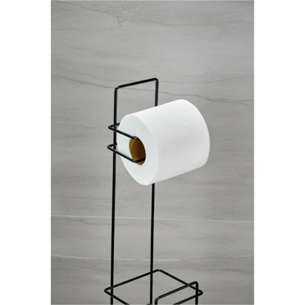 SİYAH STANDLI YEDEK HAZNELİ TUVALET KAĞITLIĞIÜrün ÖzellikleriSiyah standlı yedek hazneli tuvalet kağıtlığı, banyo ve tuvalet alanlarında hem düzen hem de estetik görünüm arayan kullanıcılar için özel olarak tasarlanmıştır. Modern ve sade çizgilere sahip standlı tuvalet kağıtlığı tasarımı, duvar delmeye veya montaj işlemlerine ihtiyaç duymadan zemine yerleştirilerek pratik kullanım sunar. Üst bölümde aktif kullanım için tuvalet kağıdı askısı bulunurken, alt kısımda yer alan yedek hazneli kağıtlık alanı sayesinde ekstra rulolar düzenli şekilde muhafaza edilir. Dayanıklı metal gövdesi uzun ömürlü kullanım sağlarken, siyah elektrostatik kaplaması sayesinde paslanmaya karşı direnç gösterir. Minimal yapısı sayesinde dar alanlarda bile rahatlıkla kullanılabilen ürün, banyo dekorasyonuna modern ve şık bir dokunuş katar. Hem ev hem de ofis kullanımına uygun olan çok amaçlı banyo düzenleyici, fonksiyonelliği ve estetik duruşu bir arada sunar.Ürün Teknik Özellikleri Özellik Açıklama Ürün Adı Siyah Standlı Yedek Hazneli Tuvalet Kağıtlığı Malzeme Dayanıklı metal Renk Siyah Yapı Standlı, zemine yerleştirilebilir Yedek Hazne Alt bölmede yedek rulo saklama alanı Montaj Montajsız, delme gerektirmez Kullanım Alanı Banyo, tuvalet, ofis Kullanım Amacı Düzenleme ve pratik kullanım Paket İçeriği1 adet siyah standlı yedek hazneli tuvalet kağıtlığı