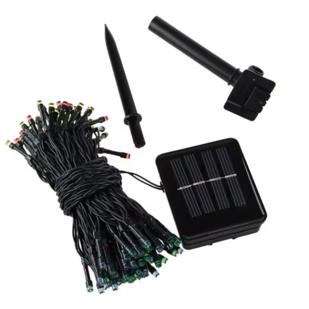SOLAR SİYAH KABLO BAHÇE AYDINLATMASIÜrün ÖzellikleriSolar siyah kablo bahçe aydınlatması, dış mekânlarda dekoratif ve ekonomik bir aydınlatma çözümü sunar. Güneş paneli sayesinde gündüzleri 4-8 saat arasında şarj olur ve tam dolu şarjla 6-10 saat kesintisiz aydınlatma sağlar. Panelin arkasında yer alan açma-kapama düğmesi ile kullanım kolaylığı sunarken, "Mode" düğmesi sayesinde farklı ışık modları arasında geçiş yapılabilir. IP65 koruması ile su geçirmez ve gönül rahatlığıyla dış mekanlarda kullanılabilir. Bahçeler, teraslar, balkonlar ve yürüyüş yolları için ideal olan bu ürün, enerji tasarruflu yapısı ile uzun süreli kullanım imkânı sağlar. Siyah kablosu sayesinde dekoratif kullanımda sade ve şık bir görünüm sunar.Paket İçeriği1 adet  Solar Siyah Kablo Bahçe Aydınlatması
