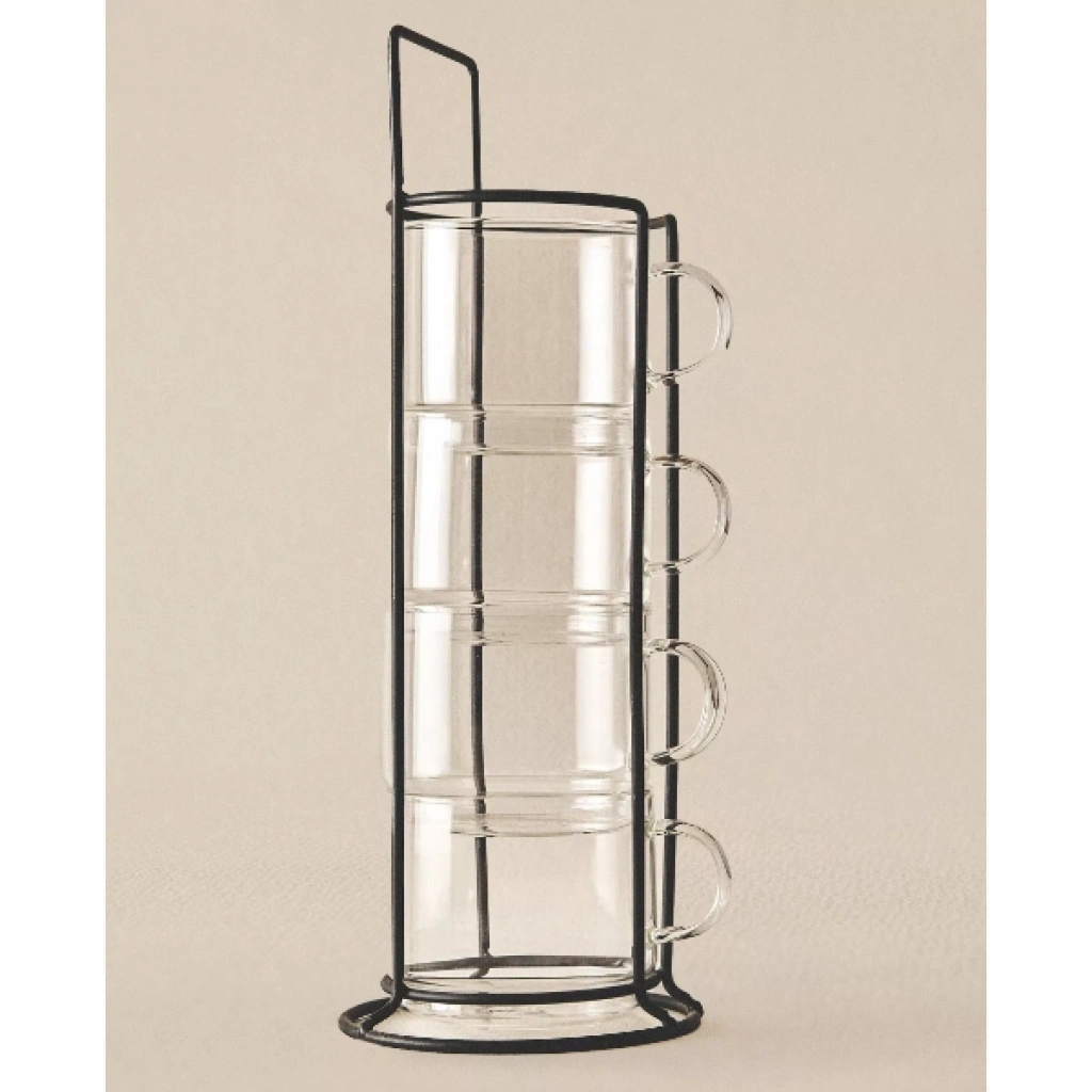 Standlı Borosilikat 4'lü Fincan Seti