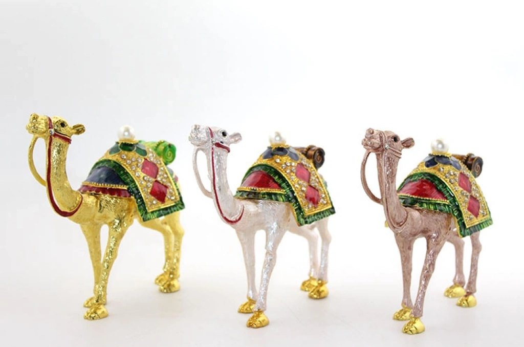 SWAROVSKI TAŞLI TEKLİ DEVE FİGÜRÜ MODEL 7Ürün ÖzellikleriSwarovski taşlarıyla süslenmiş bu zarif deve figürü, kaliteli işçiliği ve estetik tasarımı ile dikkat çeker. 16x16 cm boyutunda olan bu figür, iç mekan dekorasyonuna modern bir dokunuş sağlar. Parlak taşlar ve altın gümüş tonlarındaki detaylar, figüre sofistike bir görünüm katmaktadır.Paket İçeriği1 Adet Swarovski Taşlı Tekli Deve Figürü Model 7