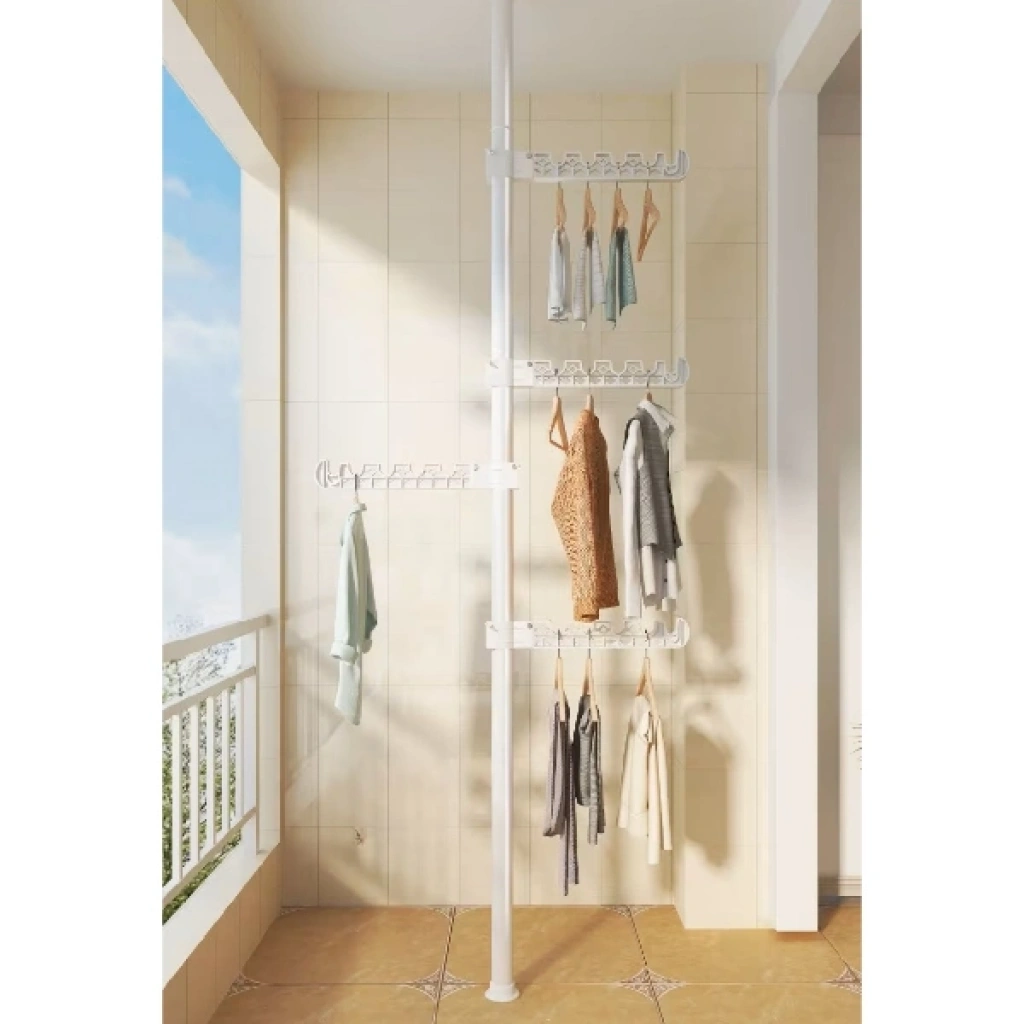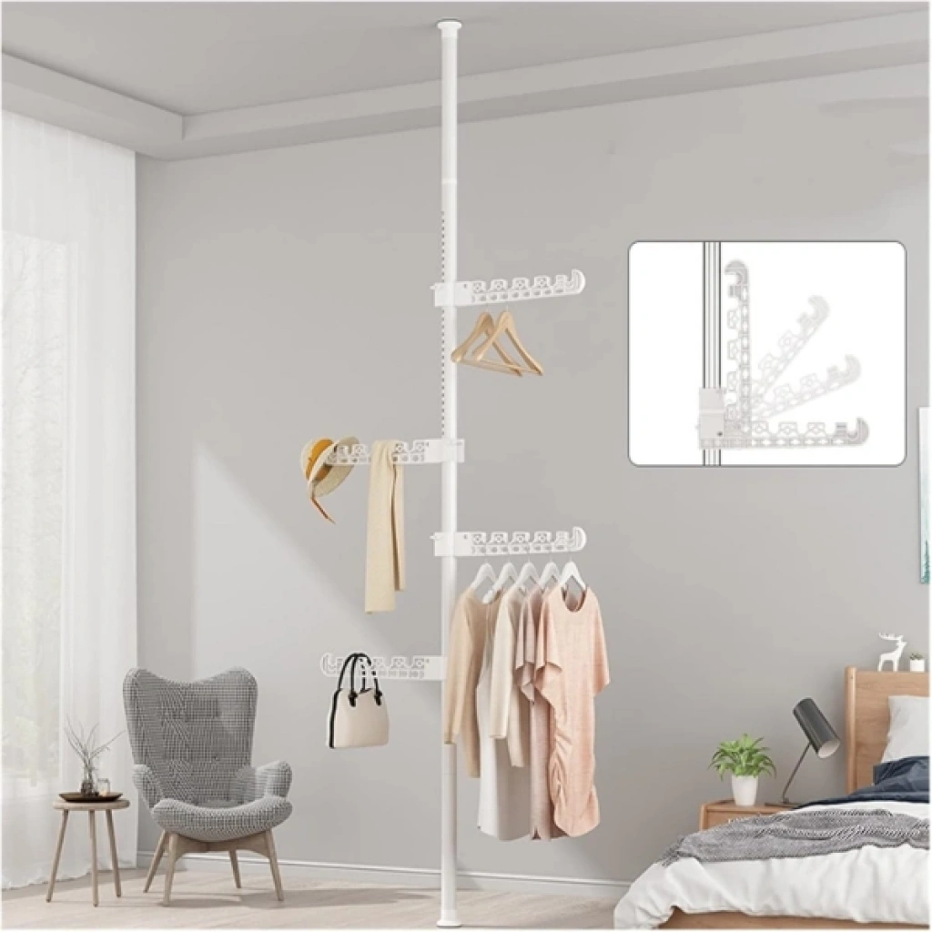 TELESKOPİK GİYSİ VE ÇAMAŞIR ASKISIÜrün ÖzellikleriTeleskopik Giysi ve Çamaşır Askısı, dar alanlarda maksimum verim almak ve kıyafetlerinizi düzenlemek için tasarlanmış yenilikçi bir depolama çözümüdür. Matkap veya vida gerektirmeyen, tavan ve taban arasına sıkıştırma yöntemiyle kurulan teleskopik direk mekanizması sayesinde evinizin her köşesini saniyeler içinde şık bir gardıroba dönüştürebilirsiniz. Ürün, üzerinde 360 derece dönebilen ve yüksekliği ayarlanabilen çok fonksiyonlu askı kollarından oluşur. Her bir askı kolu, 90 derece katlanabilir özelliği sayesinde kullanımda değilken yukarı doğru kapatılarak alan tasarrufu sağlar. Dayanıklı metal gövdesi ve yüksek taşıma kapasiteli özel askı yuvaları, kıyafetlerin birbirine karışmasını engellerken düzenli bir görünüm sunar. Sadece giysiler için değil; çanta, şapka ve aksesuarlar için de ideal bir askı alanıdır. Balkonlarda çamaşır kurutmak, yatak odalarında açık gardırop sistemi kurmak veya antrelerde vestiyer olarak kullanmak için mükemmeldir. Modern beyaz tasarımıyla her türlü iç mekan dekorasyonuna uyum sağlayan bu portatif askılık, taşınabilir yapısıyla kiracılar ve yer sıkıntısı çekenler için en pratik çözümdür.Ürün Teknik ÖzellikleriÖzellikAçıklamaÜrün AdıTeleskopik Giysi ve Çamaşır AskısıMontaj TipiSıkıştırma Sistemi (Vidasız / Matkapsız)MalzemePaslanmaz Metal Direk ve Dayanıklı ABS Plastik KollarAskı Fonksiyonu360° Dönebilir ve 90° Katlanabilir KollarYükseklik AyarıTeleskopik Ayarlanabilir GövdeKullanım AlanıYatak Odası, Balkon, Antre, Giyinme OdasıRenkBeyazPaket İçeriği1 Adet Teleskopik Giysi ve Çamaşır Askısı