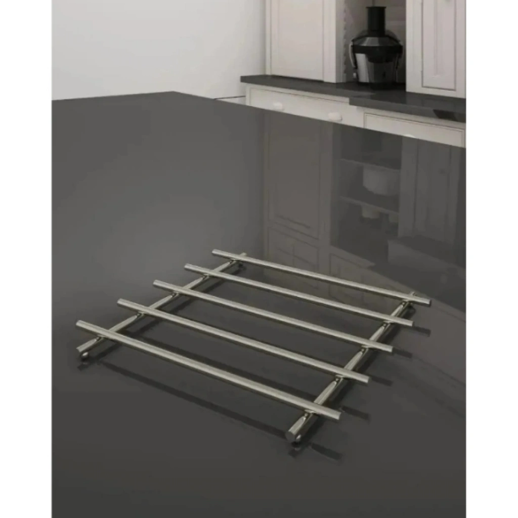 YANMAZ PASLANMAZ ÇELİK NİHALE KROM RENK Ürün ÖzellikleriModern tasarımıyla dikkat çeken bu yanmaz paslanmaz çelik nihale, yüksek ısıya dayanıklı yapısı sayesinde sıcak tencerelerinizi, tavalarınızı ve çaydanlıklarınızı güvenle tezgâh üzerine koymanıza olanak tanır. Krom renkli dış yüzeyi mutfak dekorasyonuna şıklık katarken, paslanmaz çelik malzemesi sayesinde uzun ömürlü kullanım sağlar. 20x20 cm boyutundaki kare formu, hem büyük hem küçük kaplar için ideal bir kullanım alanı sunar. Alt kısmındaki silikon kaydırmaz ayaklar sayesinde yüzeye zarar vermez ve kaymayı önler. Hem işlevsel hem de estetik açıdan mutfakta vazgeçilmez bir yardımcıdır.Paket İçeriği1 Adet Yanmaz Paslanmaz Çelik Nihale