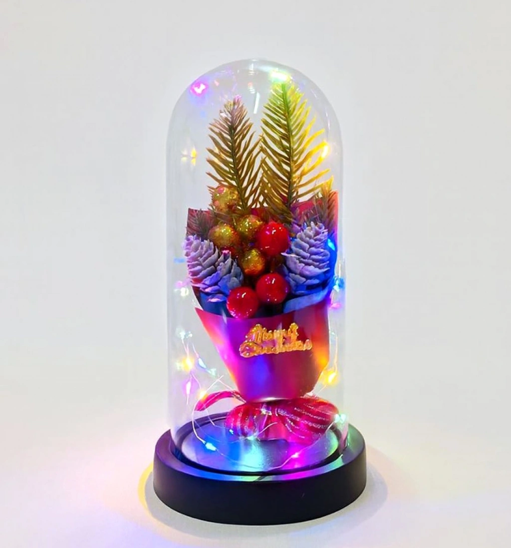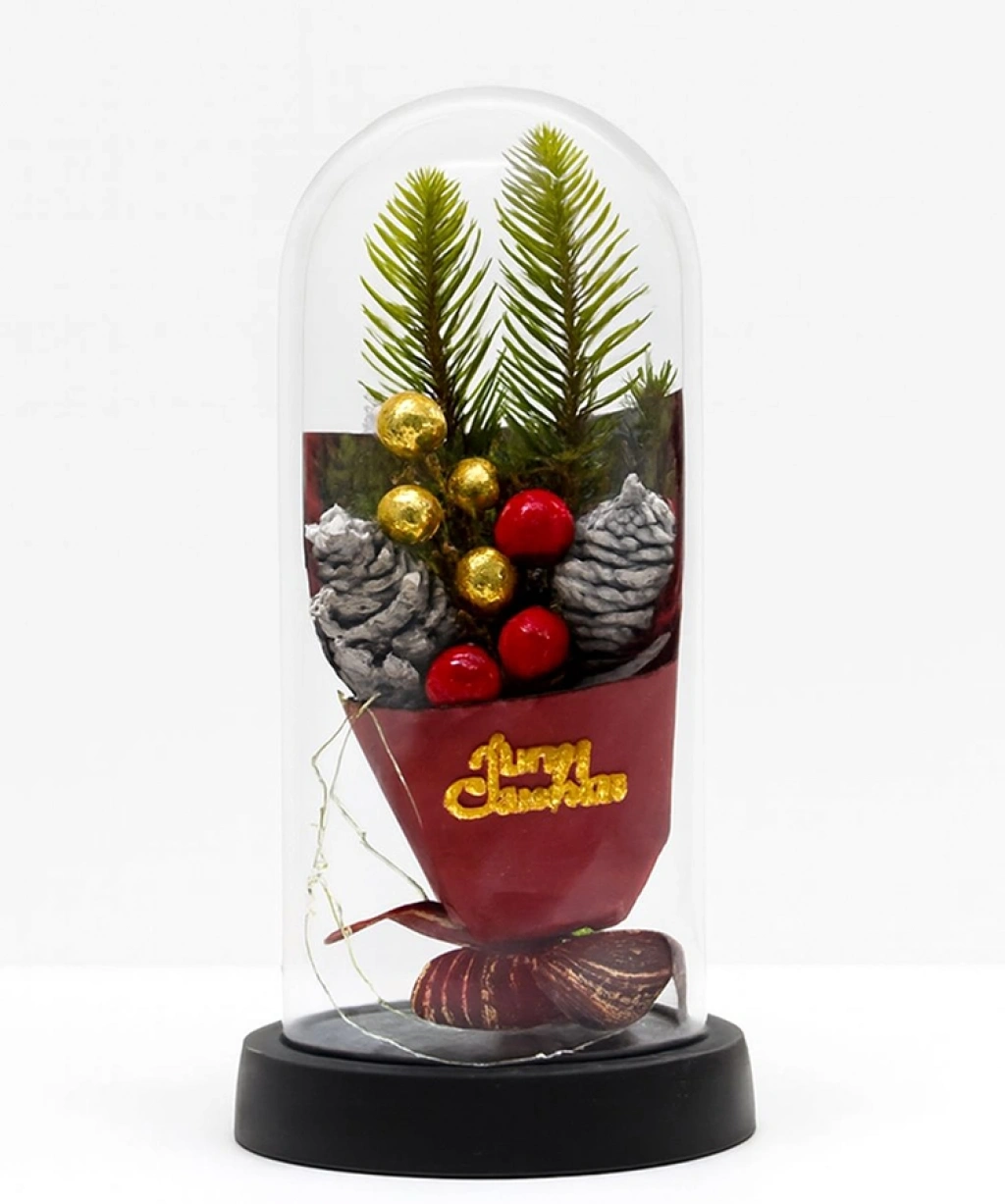 Yılbaşı Temalı Işıklı Dekoratif Cam Fanus - Model 3