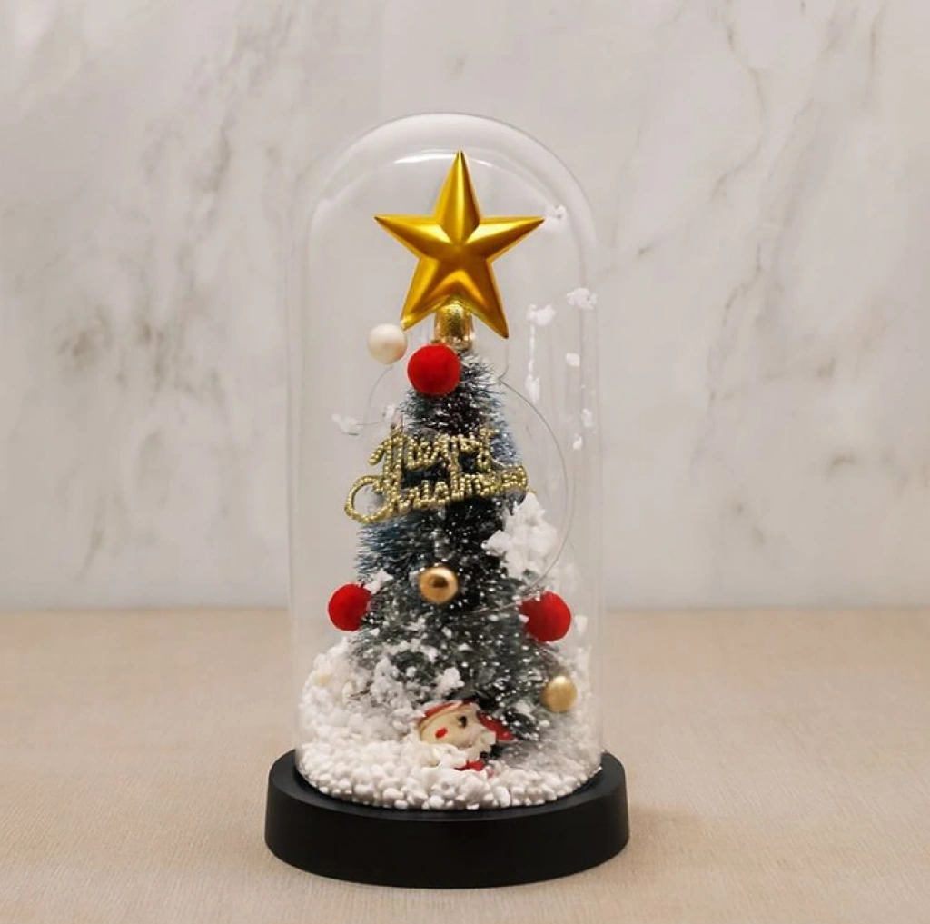 Yılbaşı Temalı Işıklı Dekoratif Cam Fanus - Model 4