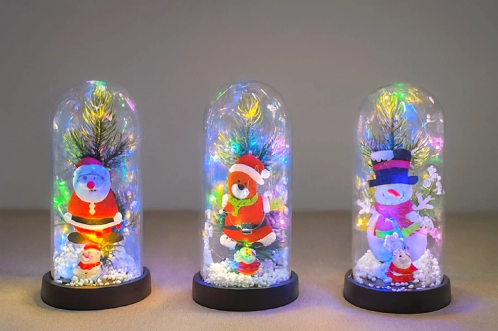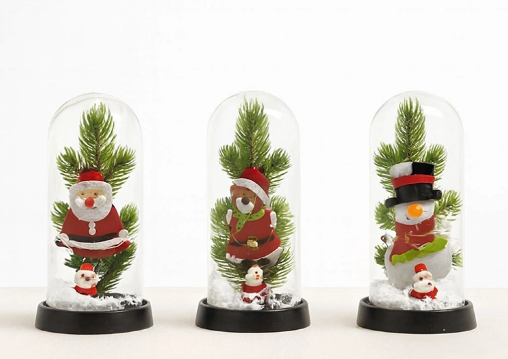 Yılbaşı Temalı Işıklı Dekoratif Cam Fanus - Model 8